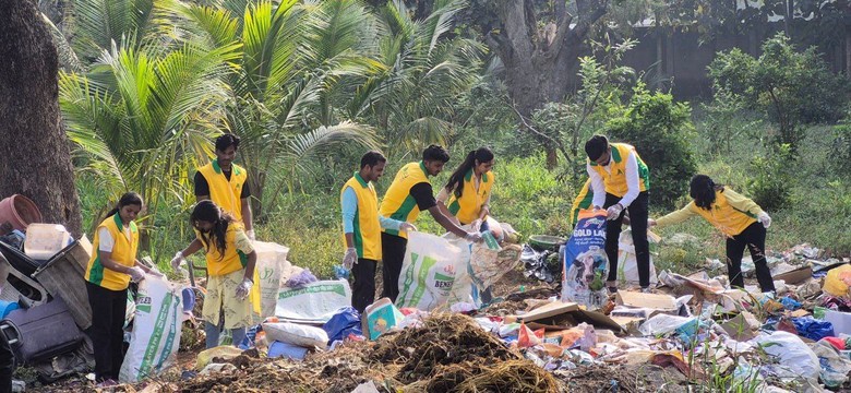 | ▲ 신천지 부산야고보지파 인도 벵갈루루교회의 116기 수료생과 성도들이 수료기념 특별 봉사로 쓰레기가 가득한 지역 보육원 주변을 치우고 있다. [사진 제공 = 신천지예수교회] |