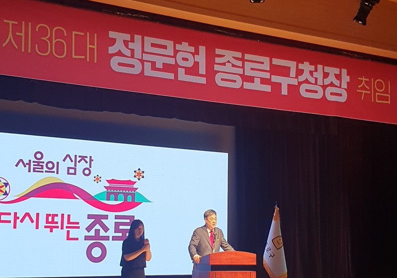 정 구청장은 “제가 정치에 뜻을 세우고 입문한지도 20여년이 다 되어 간다. 두 차례 국회의원 당선의 기쁨도 있었고 야당으로 치열하게 싸웠던 기억도 있다”며 “이제 제가 태어나고 자랐던 고향에서 행정을 맡게 되어 감회가 더욱더 새롭고 각별한 느낌이다. 그만큼 무거운 책임감과 사명을 느끼며 정치와는 또 달리 화합의 행정으로 종로 구정을 안정적으로 이끌고 저를 선택해 주신 종로주민께 다시 한 번 감사드리며 미래 문화의 산실, 세계의 본(本)이 되는 종로를 위해 서울의 심장, 다시 뛰는 종로를 위해 열심히 일하겠다.”고 취임사를 마쳤다.