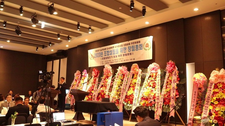 어제 6월 15일 조합원 여러분들께서 우리 사업의 첫 출발을 알리는 창립총회에 성원해 주셔서 진심으로 감사드립니다. 모든 조합원님들을 가가호호 방문하여 직접 찾아뵙고 인사를 올리는 것이 마땅하나, 여건상 어려운 관계로 이렇게 문자로나마 인사를 올리며 또 조합원님들의 성원에 보답하고자 하는 심정을 넓은 마음으로 이해해 주시길 바라겠습니다.