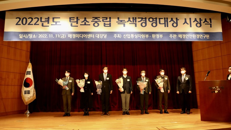 이번에 수상한 탄소중립 녹색경영 대상은 온실가스 감축에 기여하고, 친환경 경영실천 우수기업을 대상으로 매년 심의를 거쳐 행정안전부의 승인을 받아 수여된다.