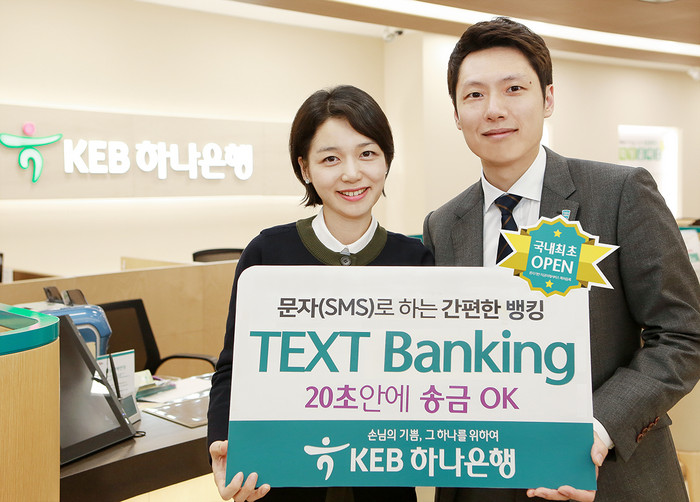KEB하나은행이 새롭게 구축한 텍스트 뱅킹은 특히 스마트폰 뱅킹 로그인, 보안매체 및 공인인증서 등 별도의 인증 절차 없이 간단한 문자 메시지로 송금이 가능한 서비스 이다.