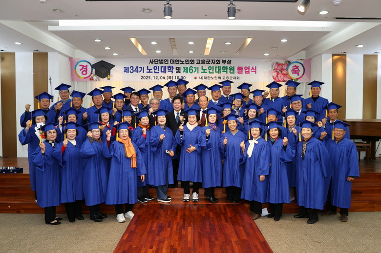 올해 노인대학과 노인대학원에서는 총 91명의 어르신이 배움의 과정을 마쳤으며, 졸업식에는 공영민 군수를 비롯해 류제동 고흥군의회 의장, 지회 임원, 가족 등이 참석해 어르신들의 값진 배움의 결실을 함께 축하했다.