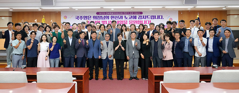 [전북특별자치도의회=세계타임즈 이상호 기자] 전북특별자치도의회는 28일 의원 총회의실에서 의회사무처 직원들이 참석한 가운데 제12대 도의회 전반기 국주영은 의장 이임식을 가졌다.