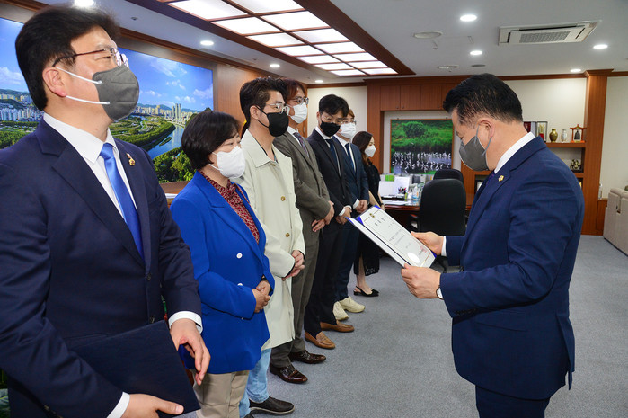 [울산=세계타임즈 이호근 기자] 울산광역시의회(의장 박병석)는 15일 오후 14시 30분 의장실에서 울산시와 울산시교육청의 2021 회계연도 결산검사를 진행하기 위해 결산검사위원 위촉식을 개최했다.