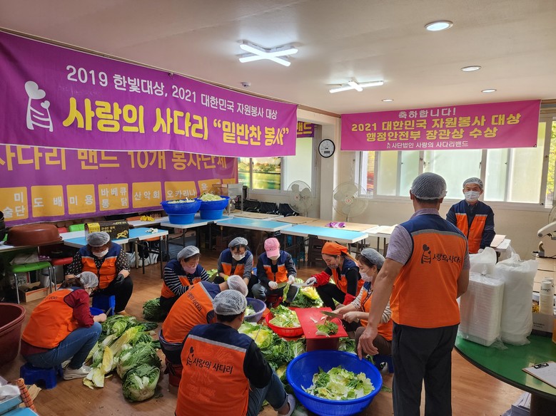 [대전 세계타임즈=이채봉 기자] 지방자치단체의 보조금 지원 없이 8년째 다양한 봉사를 실천하고 있는 사랑의 사다리 밴드(리더 이정제) 봉사단체는 3일 맛있는 밑반찬을 만들어서 대덕구 소외계층 80가정에 따뜻한 사랑을 실천하였다.