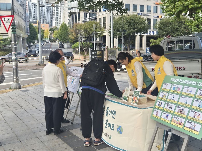이번 봉사에서는 환경 퀴즈도 함께 진행됐다. 올바른 분리배출 방법 환경고사와 탄소 줄이기 OX 퀴즈 등으로 시민들은 재미 삼아 참여하며 동시에 올바른 재활용 지식도 습득했다. 이어 탄소중립 실천을 인증하면 탄소포인트가 쌓여 지역화페로 변환해 사용가능한 ‘기후의병’ 앱 가입 팜플렛도 제공됐다. 이는 시민들의 현장 가입을 도왔고 많은 시민이 적극 동참해 실천 의지를 보였다.