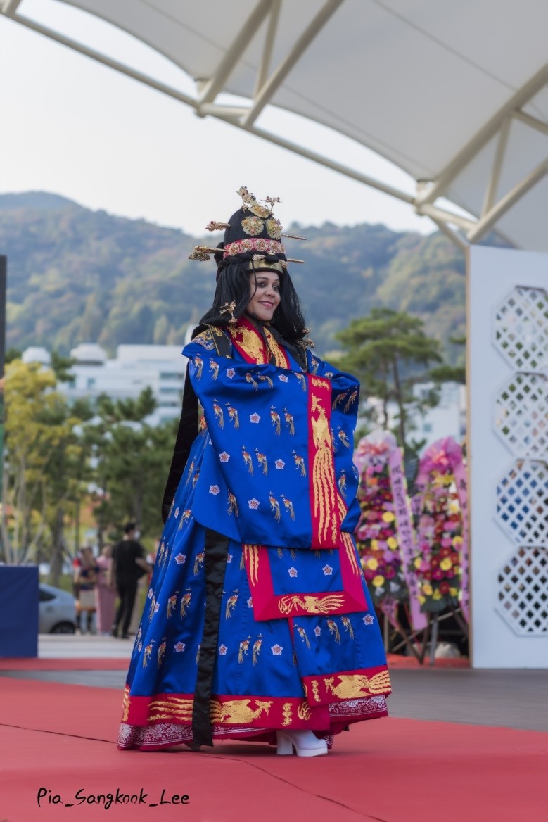 사진은:『제23회 대한민국다향축전』에서 므원데 므원지 주한 케냐 대사가 전통 궁중한복을 입고 선보였다.