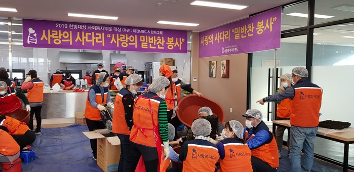 [대전=세계타임즈 이채봉 기자] 대전시 SNS 8천명 봉사단체 사랑의 사다리 밴드(리더 이정제)는 14일 오전9시, 유성구 탑립동 코리아종합안전(대표 송철영)에서 대전시 소외계층 300가정에 사랑의 밑반찬 봉사로 우리 사회의 따뜻한 사랑을 실천 하였다.