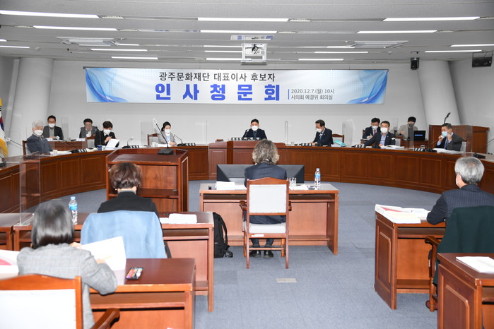 [광주=세계타임즈 손권일 기자] 광주광역시의회 광주문화재단 대표이사 인사청문특별위원회(위원장 황현택)는 7일 오전10시 시의회 5층 예산결산특별위원회의실에서 황풍년 광주문화재단 대표이사 후보자에 대한 인사청문을 실시했다