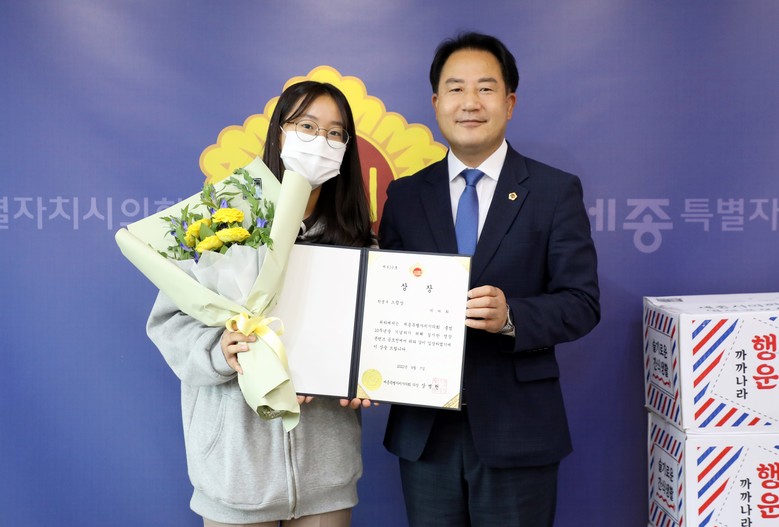 최병민 씨는 ‘세종시의회가 만드는 세종세상’으로 일반부 으뜸상을, 박채희 양은 ‘지역농산물 공공급식에 대한 조례’를 알기 쉽게 제작해 심사위원 최고점으로 학생부 으뜸상을 받았다.
