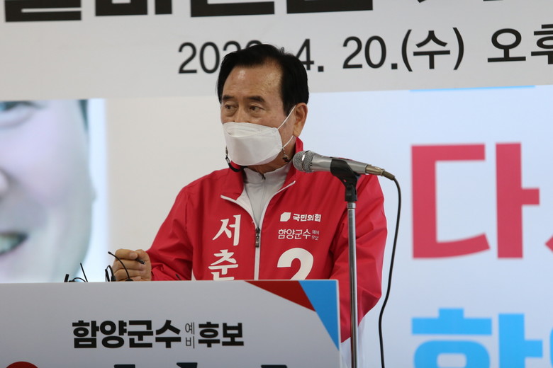 서 군수는 또 "저는 부끄럽지 않은 군수로서 군민 행복, 고향 발전만을 바리보며 혼신을 다해 왔다. 불멍예의 사슬을 끊어라고 직매와 반칙을 청산히여 정의로운 함양을 만들어 나가고 있다"고 강조했다.