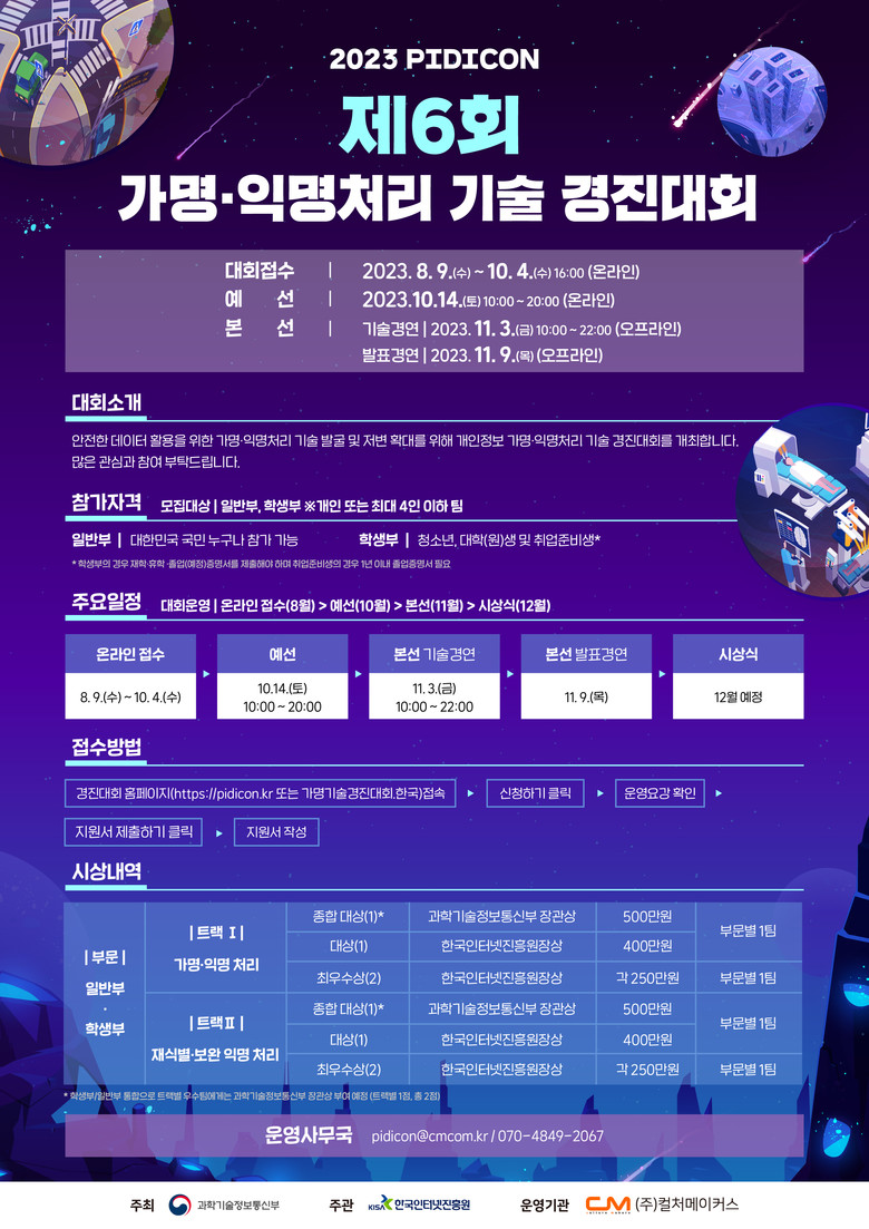 * 경진대회 누리집 : pidicon.kr 또는 가명기술경진대회.한국