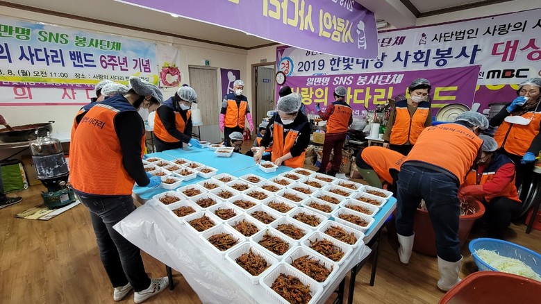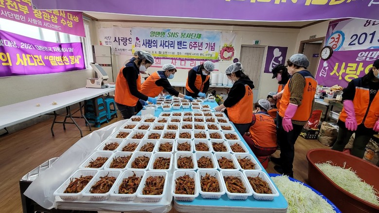 [대전 세계타임즈=이채봉 기자] 대전광역시 SNS 일만명 봉사단체 사랑의 사다리 밴드(리더 이정제)는 3일 오전9시~오후1시에 대덕구 중리동에 위치한 사랑의 사다리 밴드 사무실에서 밑반찬 3가지를 만들어서 대덕구 소외계층 90가정에 전달을 하였다.