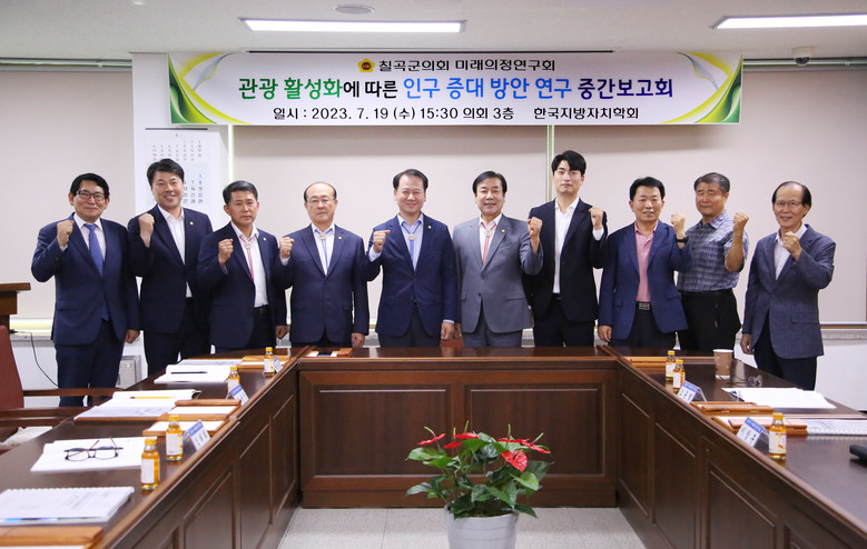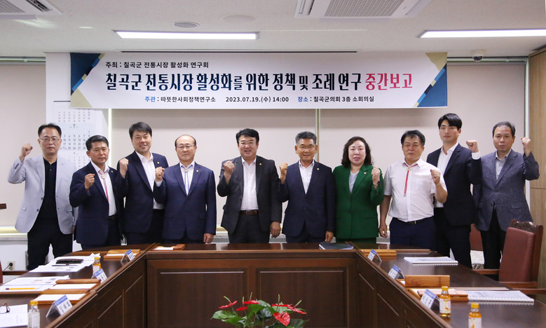 [칠곡군 세계타임즈=한성국 기자] 칠곡군의회(의장 심청보) 의원연구단체 「칠곡군 전통시장활성화연구회」와 「칠곡군 미래의정연구회」는 7월 19일, 군의회 회의실에서 연구 용역 중간보고회를 개최했다