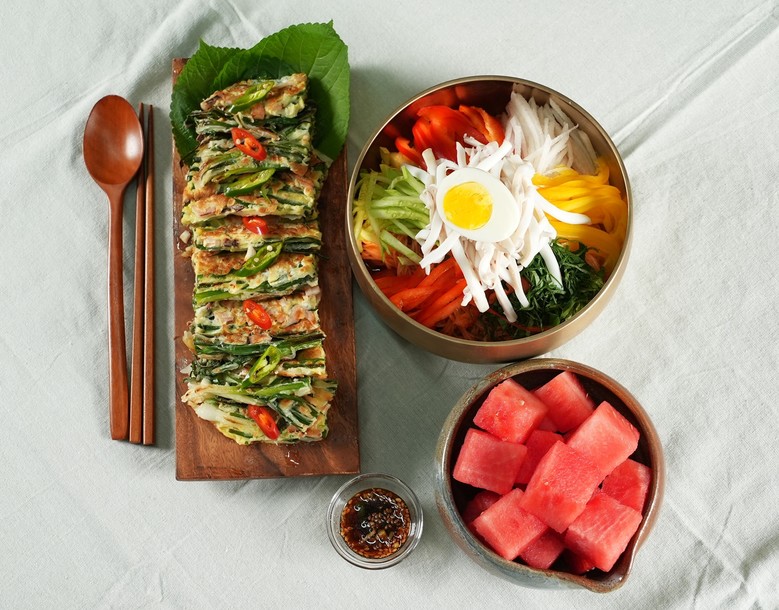 이번에 조사한 집밥 식단은 ▲ 아침으로 주먹밥, 된장국, 애호박볶음, 햇사과 ▲ 점심으로 오이 비빔국수, 해물파전, 콩나물국, 수박 등 ▲ 저녁으로 찹쌀밥, 버섯전골, 감자장조림, 포도 등으로 구성했으며, 이 식단에 대한 식재료 구입비용은 9만 8049원으로 작년 기준 10만 33원보다 2% 저렴한 것으로 나타났다.