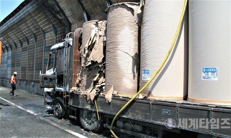 화재가 발생한 트럭은 주행중 오전 11시20분경 차량의 이상을 감지한 운전자 L씨(59세)가 갓길에 정차후 12시9분경 차량 화재를 119 신고하였고 부천 소방서의 신속한 대응으로 차량 화물이었던 제지는 차량 엔진부분이 전소된것으로 보여졌음에도 불구하고 일부만 소실 되었다.