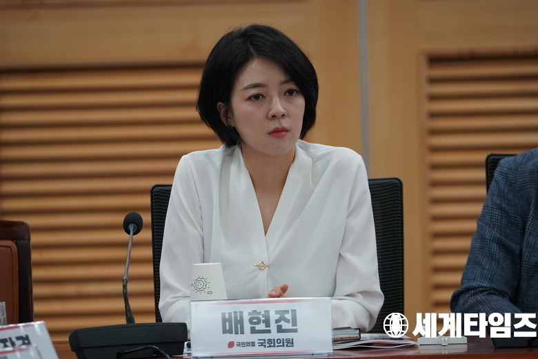 국민의힘 '배현진'의원이 21일 서울 여의도 국회 의원회관에서 열린 '이재명 정부의 방송 3법 저지를 위한 긴급토론회'에 참석했다.