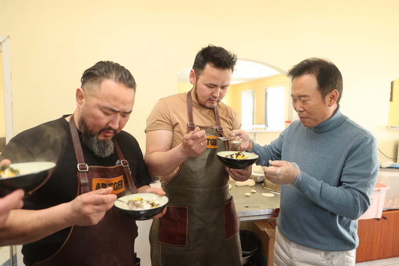 울란바토르시 부근의 몽골 최대규모 온실 스마트팜에서 진행된 프로그램에서는 황 의장의 떡국과 함께 몽골 전통 음식 ‘허르헉’이 소개됐다.