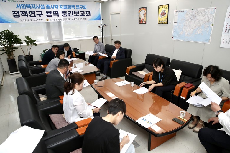 [전남 세계타임즈=우덕현 기자] 전남도의회 의원 연구단체인 ‘사회복지시설 종사자 지원정책 연구회(대표의원 박종원, 담양1)’는 지난 9월 5일 「사회복지시설 종사자 처우개선 종합계획 효과분석 및 복리후생 증진방안 모색」에 대한 정책연구용역 중간보고회를 개최했다.
