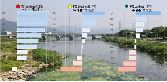 분석 결과 유기물(COD, TOC)과 총인(T-P) 등이 전체 수질 변동의 43.2%를 설명하는 주요 인자로 확인됐다. 특히 유기물 지표와 클로로필-a 간 높은 상관성이 나타나, 유기물과 조류 발생 간 연관성이 높은 것으로 분석됐다.