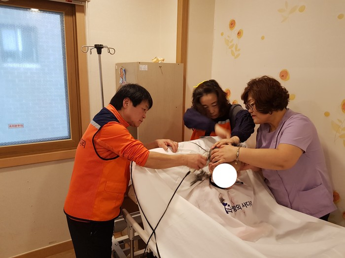 이날 미용봉사는 송남석 단장을 비롯해서 김미경 김보경 박소희 박유신 이미향 이하영 조은숙 조인숙 가위천사들이 1층, 3층, 별관에서 치매 및 와상 70명 어르신들에게 미용봉사를 하였다.