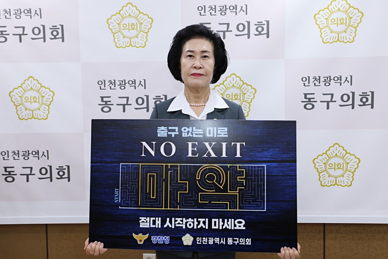 [동구 세계타임즈=심하린 기자] 인천 동구의회 유옥분 의장이 지난 20일 마약 범죄를 예방하는 『NO EXIT 릴레이 캠페인』에 동참했다고 밝혔다.
