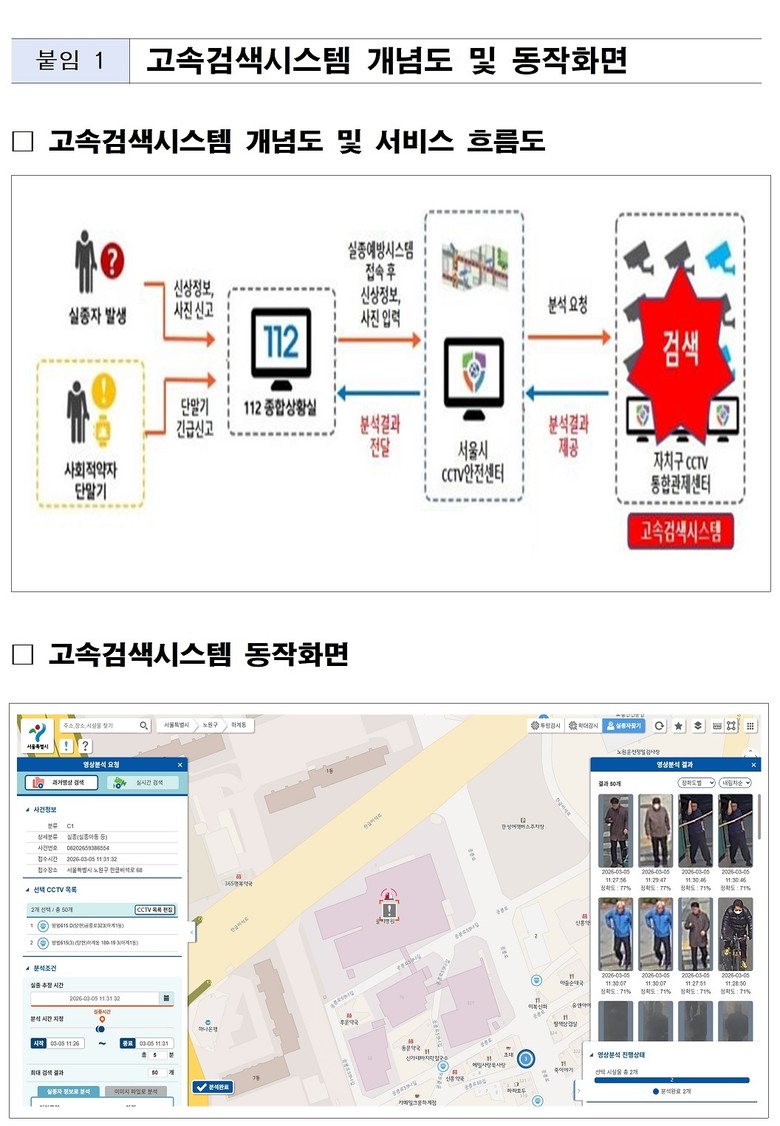 AI 기반 CCTV 고속검색시스템이 전 자치구에 구축되면 자치구에서 운영 중인 약 12만 3천 대의 CCTV를 하나의 시스템처럼 검색할 수 있게 되며, 실종자가 자치구 경계를 넘어 이동하더라도 서울 전역 CCTV를 대상으로 한 광역 단위 영상 검색이 가능해질 전망이다.