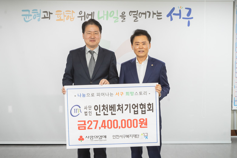 [서구 세계타임즈=심하린 기자] (사)인천벤처기업협회(대표 서동만)은 인천서구복지재단(이사장 강범석)에 약 3천만 원 상당을 지정기탁했다.