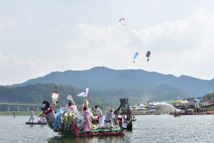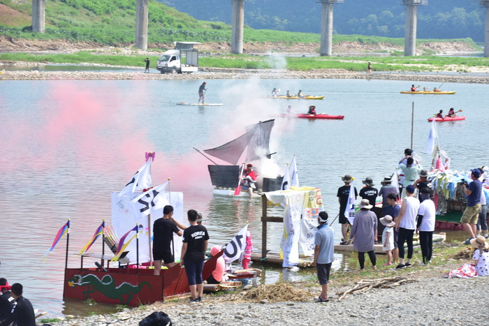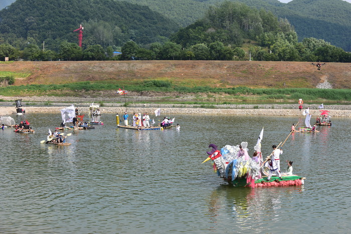 2018 동강뗏목축제에서 퓨전뗏목만들기대회가 열렸다.