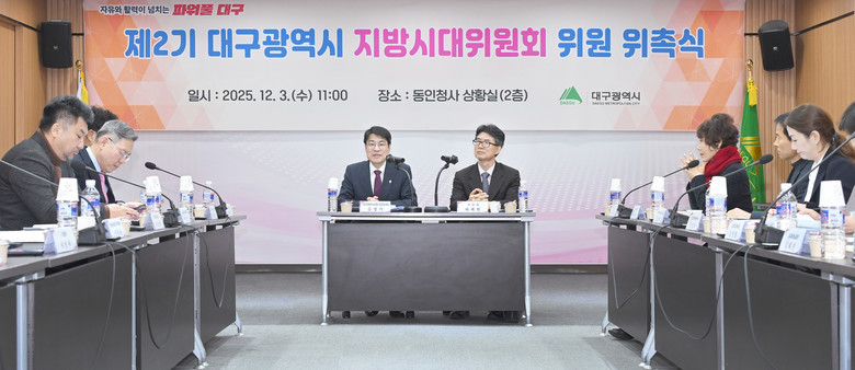 12월 3일(수) 시청 동인청사 2층 상황실에서 열린 위촉식에서 김정기 대구광역시장 권한대행은 참석한 위원들에게 직접 위촉장을 전달하며, “대구의 미래를 여는 열쇠가 되어 달라”고 격려했다.