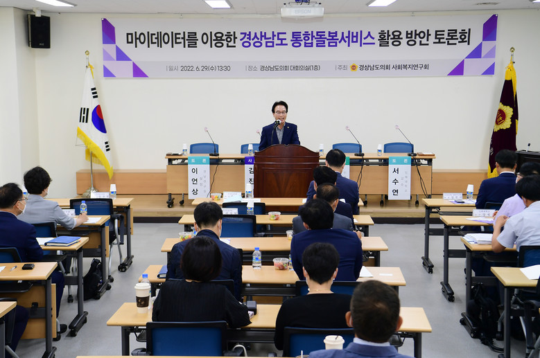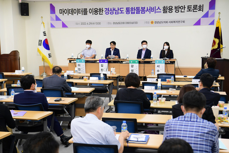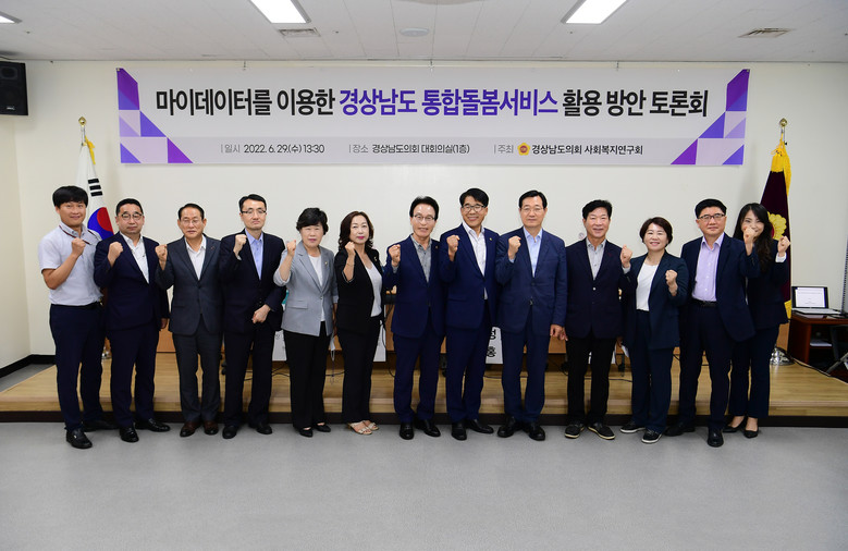 [세계타임즈=경남 최성룡 기자] 경남도의회 의원연구단체 사회복지연구회(회장 김진기 의원)는 6월 29일 경상남도의회 대회의실에서‘마이데이터를 이용한 경상남도 통합돌봄서비스 활용 방안’에 대한 토론회를 가졌다.