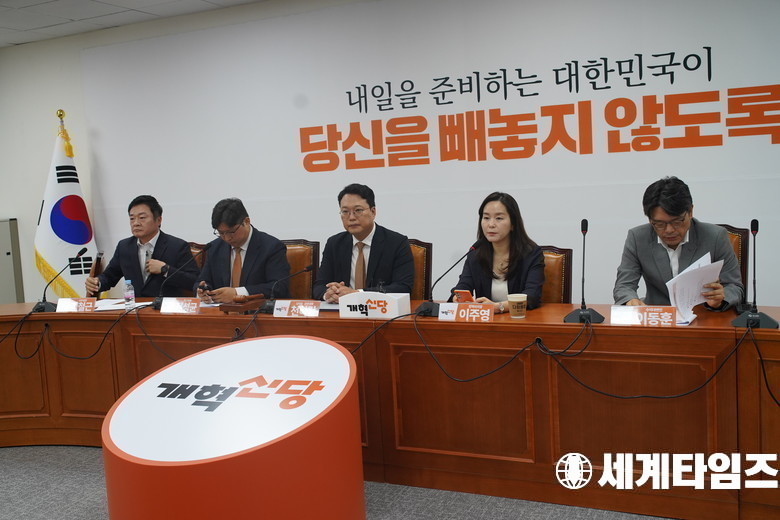 23일 오전 서울 여의도 국회에서 열린 최고위원회의에 참석한 '개혁신당'의원들이 발언을 하고있다.