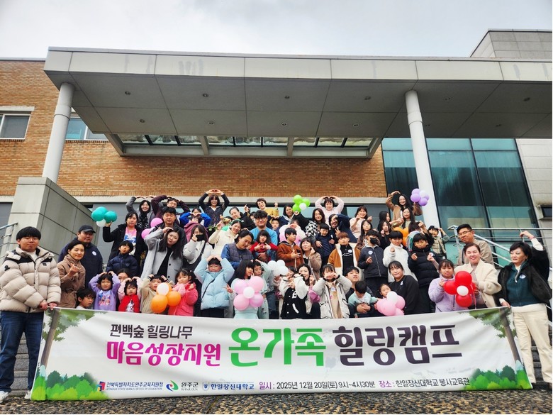 유희태 완주군수는 “온가족 힐링캠프는 아동과 가족의 마음 건강을 지역이 함께 돌보는 의미 있는 사업”이라며 “앞으로도 가정·학교·지역이 함께하는 돌봄·교육 통합 모델을 지속적으로 확대해 나가겠다”고 밝혔다.