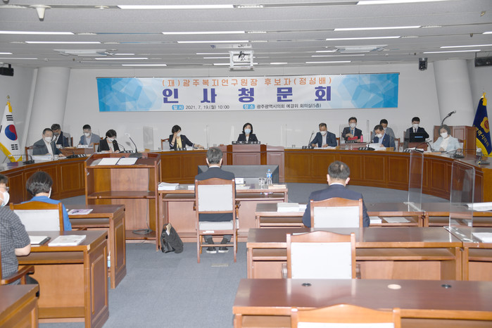 [광주=세계타임즈 손권일 기자] 광주광역시의회(의장 김용집)는 19일 오전 시의회 예산결산특별위원회의실에서 정성배 광주복지연구원장 후보자 인사청문회를 개최했다