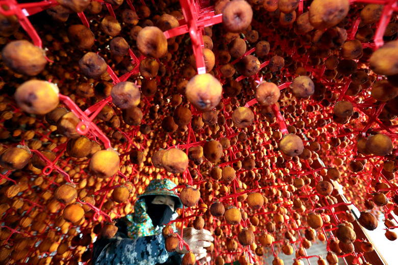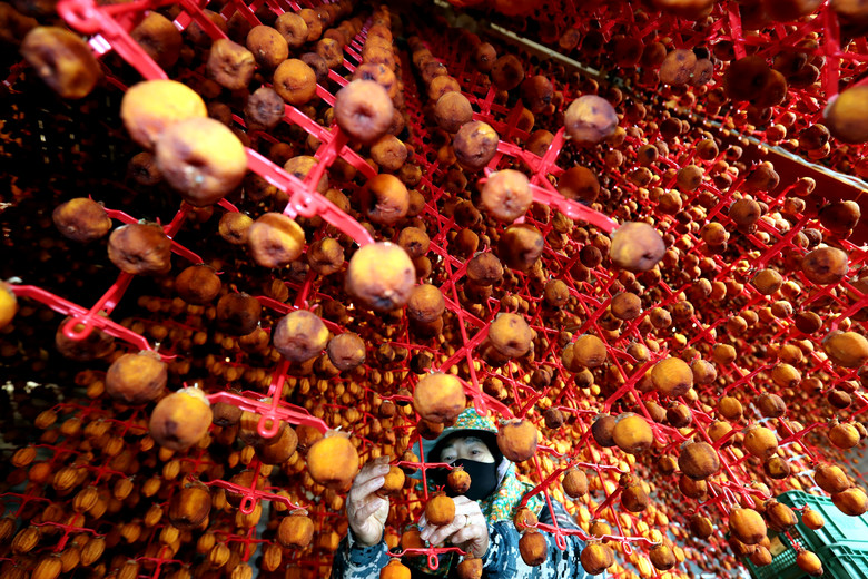 [충북 세계타임즈=이현진 기자] 말린 곶감 출하가 본격 시작된 8일 충북 영동군 한 농장 관계자가 곶감을 손질하며 분주한 모습을 보이고 있다./충북도의회 제공