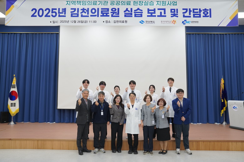 - 전국 최초 책임의료기관 연계한 공공·필수의료 현장 중심 교육모델 단계적 확산 - [세계타임즈=경북 한윤석 기자] 경상북도는 26일 도내 지역책임의료기관 5개소에서 동국대학교 의과대학 본과 3학년 학생 34명이 참여한 현장실습을 마무리하고, 실습 성과를 점검하기 위해‘공공의료 현장실습 보고 및 간담회’를 개최했다.
