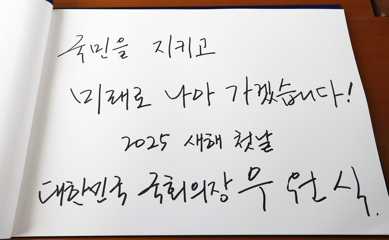[세계타임즈 = 이채봉 기자] 우원식 국회의장이 1일 오전 서울국립현충원을 찾아 현충탑을 참배한 뒤 작성한 방명록. 2025.1.1