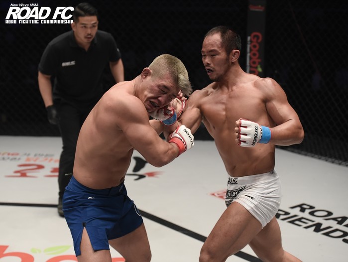 [세계타임즈 김인수기자] 양해준은 지난 15일 원주 종합체육관에서 열린 굽네몰 ROAD FC 054에서 라인재를 꺾고 ROAD FC 미들급 7대 챔피언으로 등극했다.
