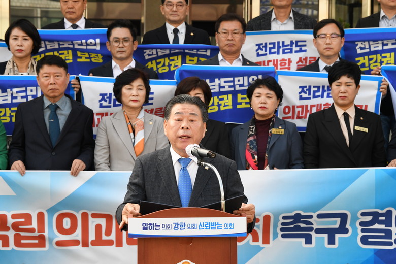 아울러, 현재 정부의 정책 방향이 의대 신설이 아닌 기존 의과대학 입학정원 확대만을 강조하는 방안으로 보도되고 있는 점에 우려를 표명하며, 산업재해가 빈발하고 섬이 많아 응급의료에 분초를 다퉈야 하는 지역 특성을 고려할 때 전라남도 의과대학 신설과 상급 종합 대학병원 설립은 당연한 일이라고 역설했다.