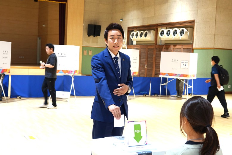 임채성 의장은 이날 오후 2시 종촌동 행복누림터 지하 2층 체육관에 마련된 사전투표소를 방문해 투표에 참여했다.