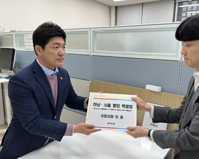 이용 의원은 지난 7 일 주민자치회 등 하남시 주요단체장 , 입주자대표들의 입법 건의를 받고 “ 서울 편입 추진으로 하남 시민의 생활 불편을 개선해주기를 바란다 ” 는 의견을 즉각 반영한 것이다 .