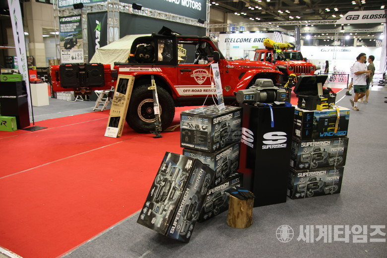 오프로드 차량과 튜닝부품이 전시되어 있다. (사진:방춘재)