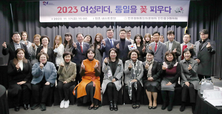 [중구 세계타임즈=심하린 기자] 인천 중구의회는 지난 17일 영종 네스트 호텔에서 민주평화통일자문회의 인천중구협의회의(회장 전승호) 주최로 개최된「여성리더, 통일을 꽃 피우다」에 참석하여 자문위원 및 지역 여성리더들과 함께 통일활동 역량을 강화하는 시간을 가졌다고 밝혔다.