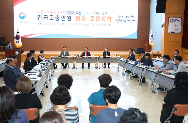 국민권익위원회(위원장 유철환, 이하 국민권익위)는 14일 경상남도 창원시청에서 경상남도 창원특례시(이하 창원시), 소상공인시장진흥공단, 경남신용보증재단, 롯데백화점 등이 참여한 가운데 롯데백화점 마산점 폐업으로 경제적 어려움을 겪는 소상공인 대상 상생방안 마련을 위한 조정회의를 개최했다.