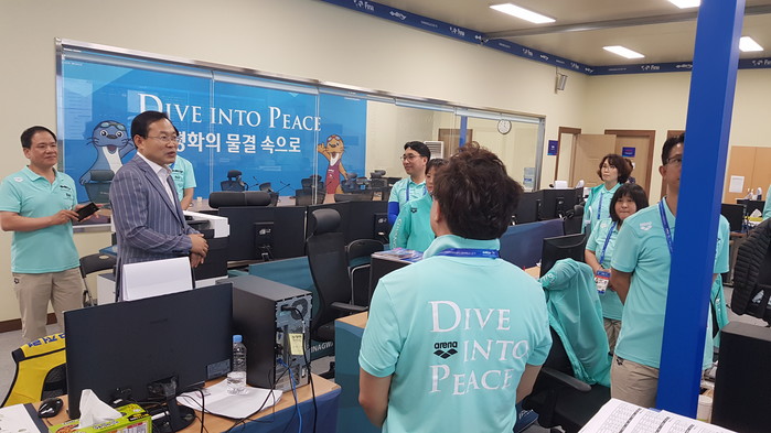 [광주=세계타임즈 손권일 기자] 김동찬 광주광역시의회 의장은 22일 오후 광산구 남부대 2019광주세계수영선수권대회 종합상황실(MOC)을 방문하여 대회 관계자들의 노고를 격려했다.