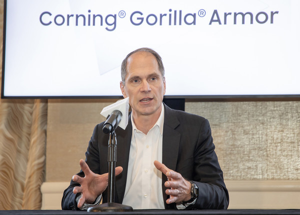 존 베인 코닝 모바일소비자가전사업부 수석 부사장 겸 총괄 책임자가 17일(현지시간) 미국 캘리포니아주 새너제이에서 열린 기자간담회에서 삼성전자 갤럭시 S24 울트라 모델에 적용된 코닝 ‘고릴라 아머’ 유리에 대해 이같이 소개했다.