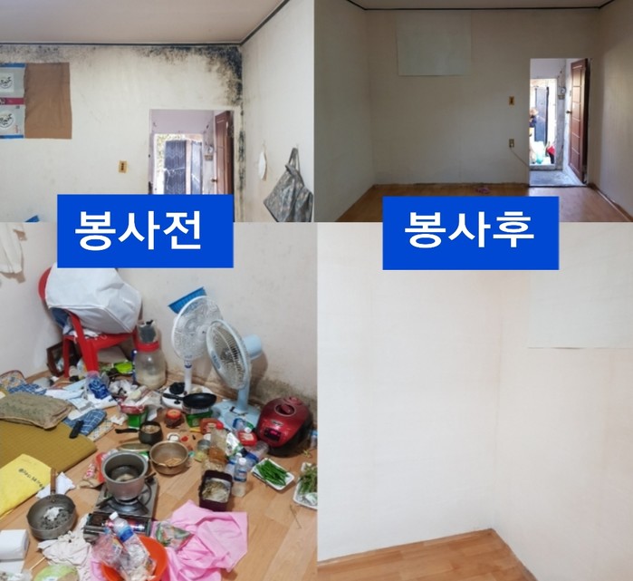 집안청소봉사단 김호찬 단장은 “오늘 도배 봉사와 집안청소 봉사 후 깨끗해진 주거환경 속에서 96세 어르신께서 건강하게 지내시길 바란다.”고 말했다.