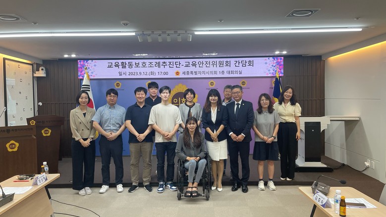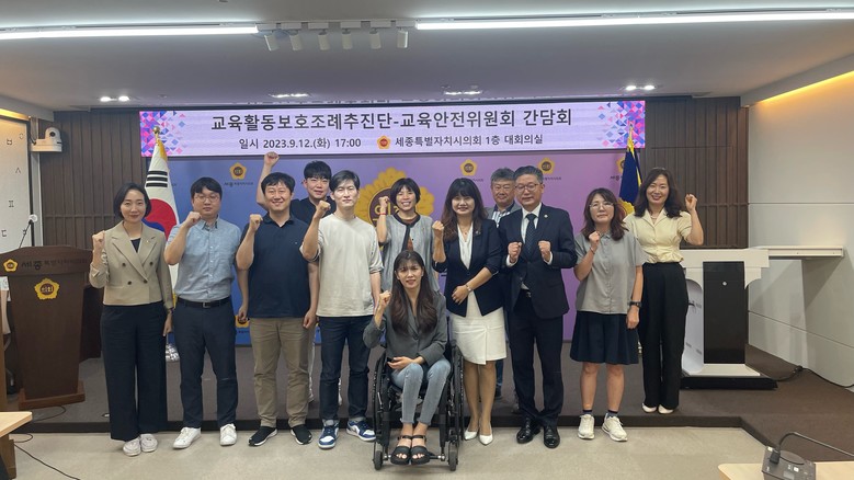 끝으로 세종교육활동보호조례 주민발의 추진단(이하 추진단)과의 간담회에서는 조례 제정의 취지 및 관련 내용에 대한 의견과 각 참여 단체의 입장을 나눴다. 아울러 최근 교육 현장에서 비통한 소식들이 잇따르고 있는 상황에서 교육 현장의 안정화가 무엇보다 중요하고 특히, 학교 내 학생들의 올바른 성장 지원과 교원들의 정당한 생활지도가 가능하도록 조화를 이루려는 것이 이번 조례제정의 취지라는 것에 공감했다.