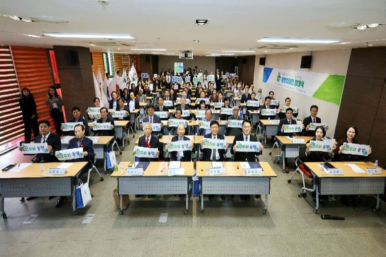 21일 한국 전통문화전당에서 HWPL 글로벌12지부 ‘동행 캠페인’ 발대식이 진행된 가운데 참석자들이 동행 협약서에 서명을 하고 있다.