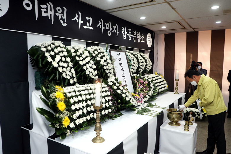 [충북 세계타임즈=이현진 기자] 충북도의회 황영호 의장과 도의원, 직원들은 31일 오전9시 도청 신관 1층 민원실 앞 로비에 마련된 이태원 사고 사망자 합동분양소를 찾아 헌화와 묵념 등을 하며 넋을 기렸다.